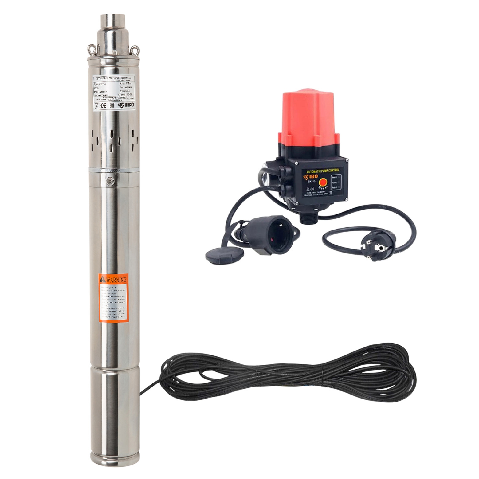 Tiefbrunnenpumpe 370 - 750 Watt inkl. elektrischer Zuleitung, Pumpensteuerung wählbar